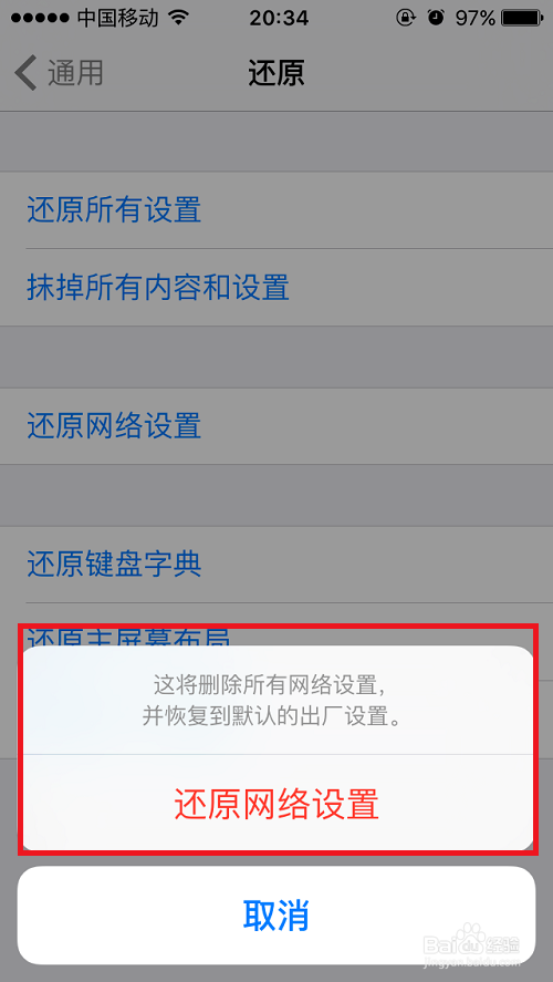 如果以上兩種方法不可行,再試試這個(gè)辦法,在設(shè)置頁面往下滑動(dòng),找到通用,再點(diǎn)擊進(jìn)入其中的還原,接著點(diǎn)擊還原網(wǎng)絡(luò)設(shè)置,這時(shí)候要我們確認(rèn)一次鎖屏密碼,輸入之后就可以進(jìn)行還原網(wǎng)絡(luò)設(shè)置的操作。ps:這個(gè)程序操作之后,原本iPhone手機(jī)上的所以網(wǎng)絡(luò)信息,包括連接wifi密碼以及相關(guān)參數(shù)設(shè)置都會(huì)被清空。