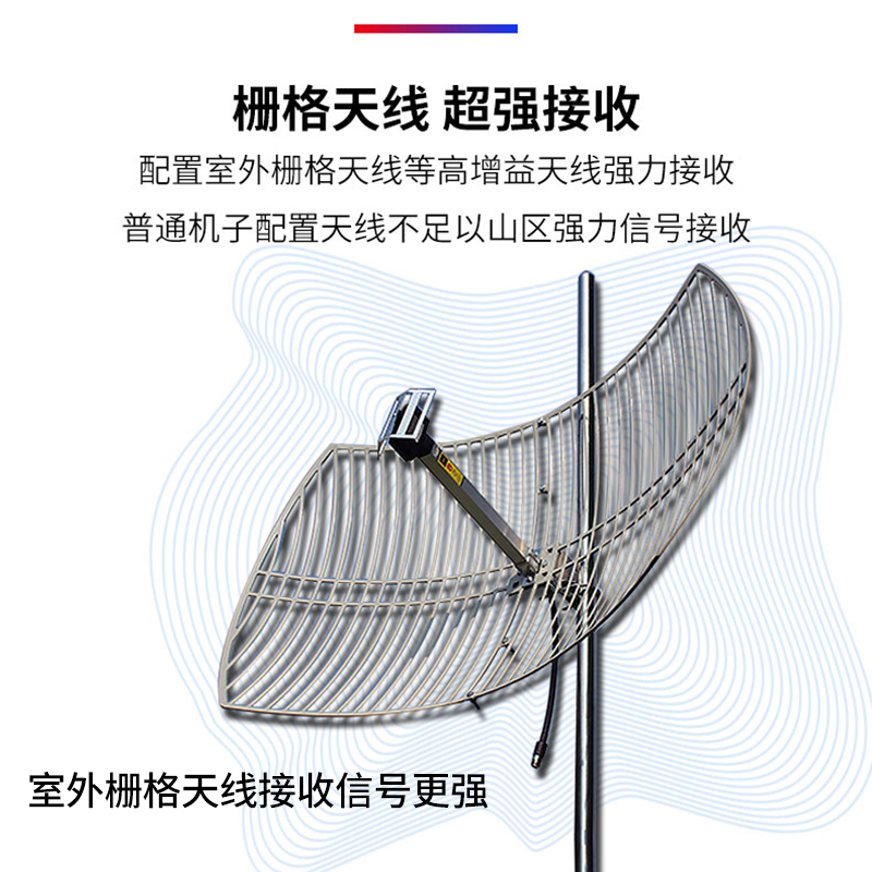 搭配加強柵格天線,頻段范圍:820-960MHZ,1700-1880MHZ,1920-2170MHZ,最大功率100w,柵格天線的優點防雷防雨、將室外信號引入,經由信號放大器放大信號,讓用戶接收良好的手機信號。