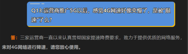 對于 “運營商推廣 5G 以后,感覺 4G 網速好像變慢了”的問題,官方表示:三家運營商一直以來認真貫徹國家提速降費要求,致力于提供優質的網絡服務,未對 4G 網絡進行降速。